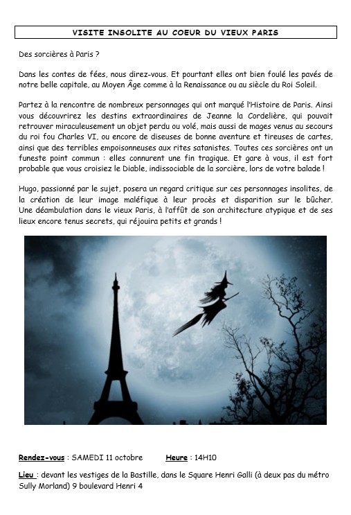 Cette sortie aura lieu Samedi 11 Octobre 2025 avec un RDV à 14H10 , square Henri Galli près du Métro Sully Morland