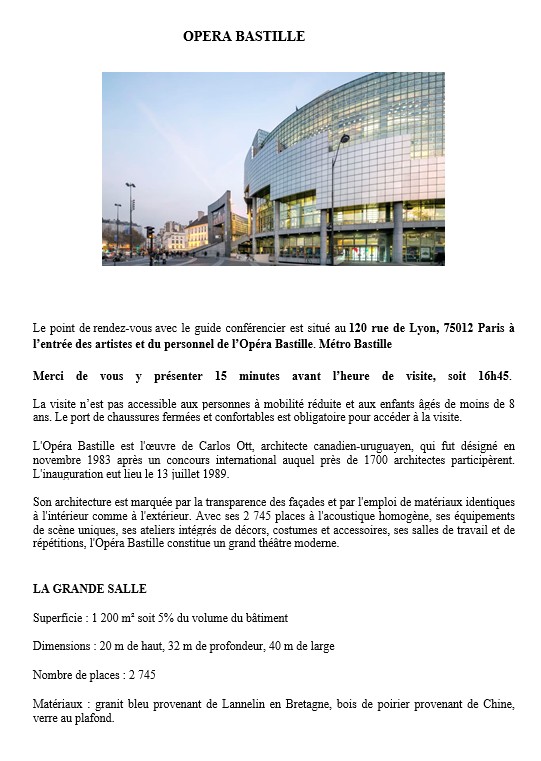 Cette sortie aura lieu Samedi 13 Décembre avec un RDV à 16H45 au 120 rue de Lyon Paris 12ème à l’entrée des Artistes et du Personnel de l’Opéra Bastille. Métro: Bastille